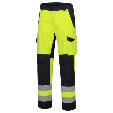 2-farbig • angesetzter Bund mit verdecktem Knopfverschluss • Schlitz mit Reißverschluss • 2 Flügeltaschen • Gesäßtasche rechts mit Patte • 1 Blasebalgtasche links mit zusätzlicher innenliegender Stifttasche und Handytasche- mit Patte, verdecktem Druckknopf • 1 Zollstocktasche rechts mit aufgesetzter Utensilientasche und Patte • Knietaschen mit Klettverschluss • flammhemmende Reflexstreifen • industriewaschtauglichEinsatzgebiete