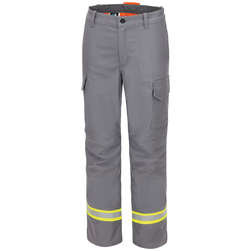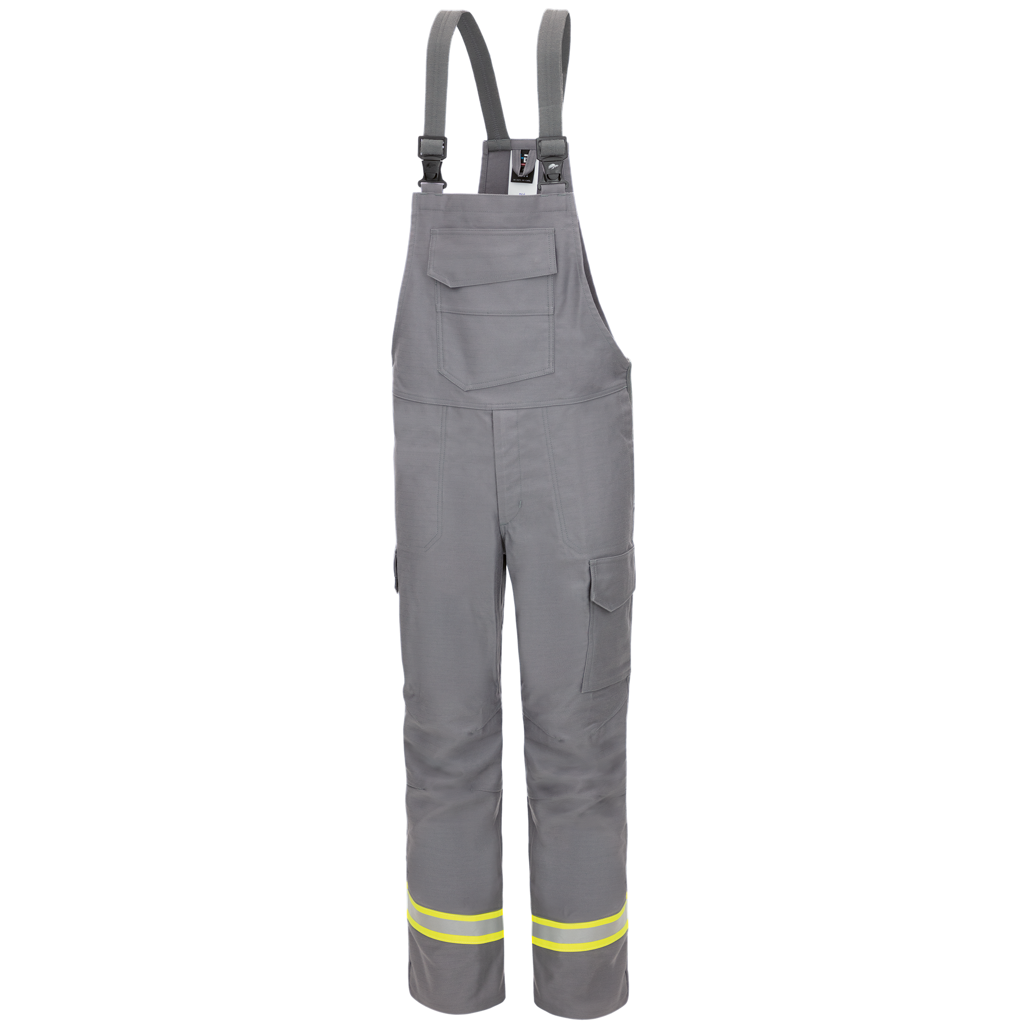 A modern stand-up collar, set-in side pockets with zips, bright yellow piping and an ergonomic line characterise the new jacket. Diagonally arranged reflective stripes on the trousers ensure a dynamic look and improved visibility. Elastic knitted inserts on the side entry of the dungarees also provide an optimum fit and greater wearing comfort. Flame-retardant stretch straps and a high-cut kidney protection additionally improve the protective function.