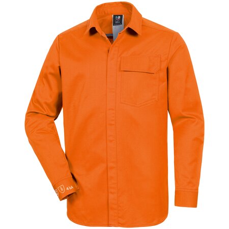 Single-coloured • Comfort Fit; regular turn down collar • front closure with snap fasters covered on both sides • 1 attached pocket with flap and covered snap fasteners • ergonomic sleeves with protective sleeve vent and adjustable snap fasteners • FR leasing collar • standard pictograms as flame retardant direct embroidery on the right cuff.Fields of application