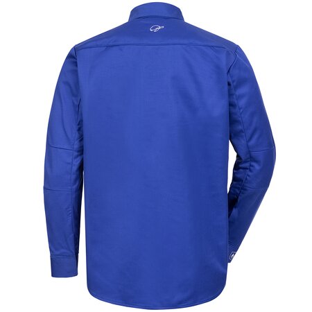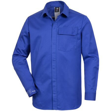 Single-coloured • Comfort Fit; regular turn down collar • front closure with snap fasters covered on both sides • 1 attached pocket with flap and covered snap fasteners • ergonomic sleeves with protective sleeve vent and adjustable snap fasteners • FR leasing collar • standard pictograms as flame retardant direct embroidery on the right cuff.Fields of application