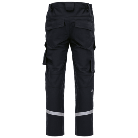 Single-coloured • waistband with button and zip-fly • 2 slant pockets •1 hip pocket with flap and covered snap fastener • 1 ruler pocket on the right with flap and snap fastener • 1 bellow pocket on the right with flap and snap fastener • knee pockets with hook and loop fastener • reflective elements • flame-retardant reflective stripes suitable for industrial laundry • no Hi-Vis protective clothing acc. to EN ISO 20471.Fields of application