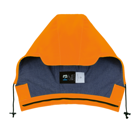 Single-coloured • flame retardant outer fabric with liner • welded seams • separate hood to be attached by zipper • field of vision adjustable with drawstring • hood height adjustable at the back of the head with Velcro closure • certification only in combination with parkaFields of application