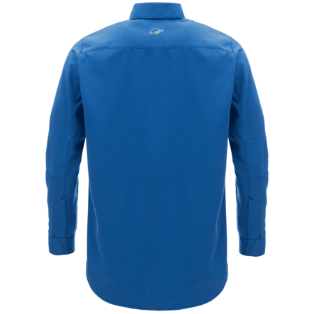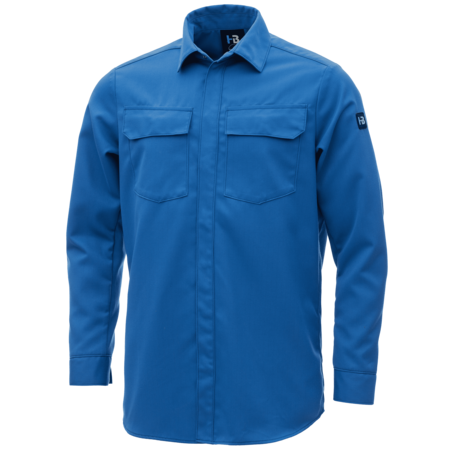 single-coloured • Comfort Fit • turn-down collar with snap fastener • front with covered snap fastener on both sides • chest pocket with flap and sleeve cuff with gusset - each with covered snap fastener • preformed sleeves • FR Leasing label • standard pictograms as FR embroidery an right sleeve cuff