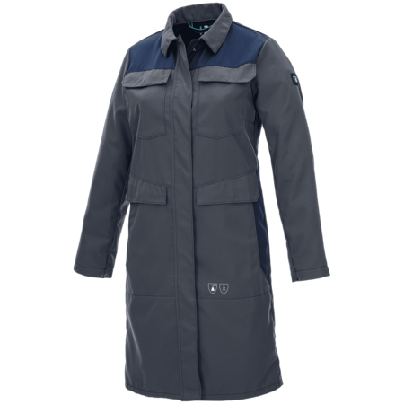 Two-coloured • Turn-down collar • covered front closure with snap fasteners • 2 attached breast pockets and 2 side pockets with flaps and covered snap fasteners • sleeve width adjustable via snap fasteners • leasing neck label • embroidered FR standard pictograms on the frontFields of application