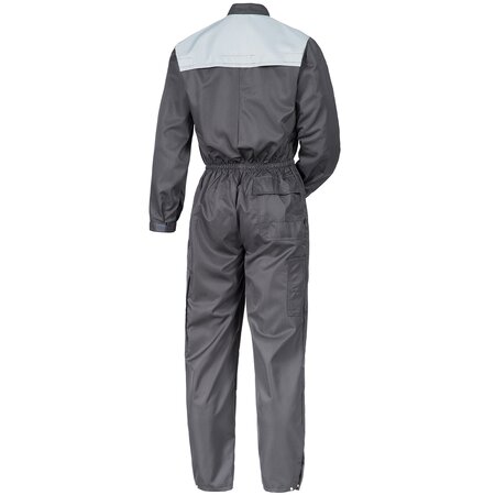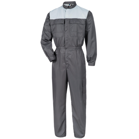 Two-coloured • band collar • covered 2-way PVC zip fastener • 1 inner front pocket on the left • 2 attached front pockets, 1 hip pocket on the right and 1 leg pocket on the left as bellows on side seam with flap and covered hook & loop fastener • 2 side seam pockets • 1 ruler pocket on the right • outer pockets reinforced • waist adjustment via integrated elastic band with drawstring and stoppers • ventilation via cape collar on back and mesh inserts in armpit area • wristbands with vent and hook & loop fastener • leg opening adjustable via PVC snap fasteners.Fields of application