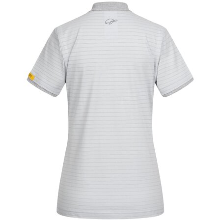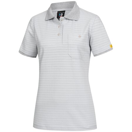 Single- or two-coloured • female cut • conductive polo collar • polo placket with buttoning • front pocket on the left with button • double-stitched sleeve opening • stylish shirt length, suitable for wearing on top • EPA logo on right upper arm.Fields of application