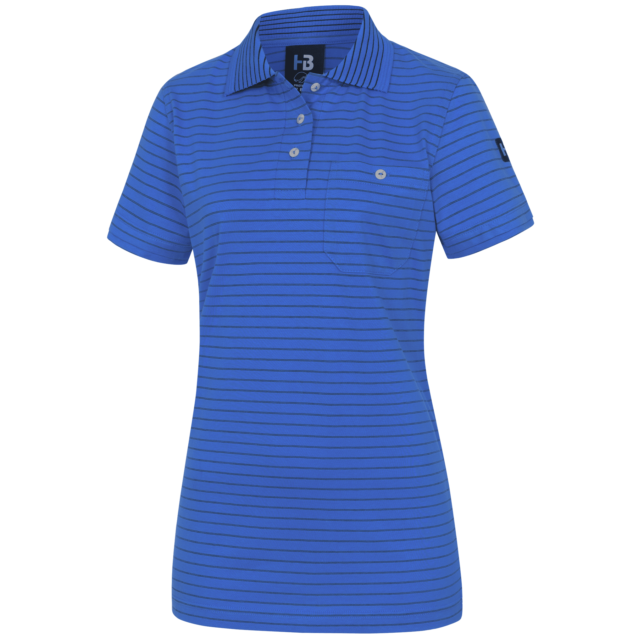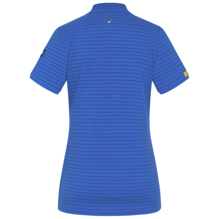 Single- or two-coloured • female cut • conductive polo collar • polo placket with buttoning • front pocket on the left with button • double-stitched sleeve opening • stylish shirt length, suitable for wearing on top • embroidered EPA logo on left upper arm.Fields of application