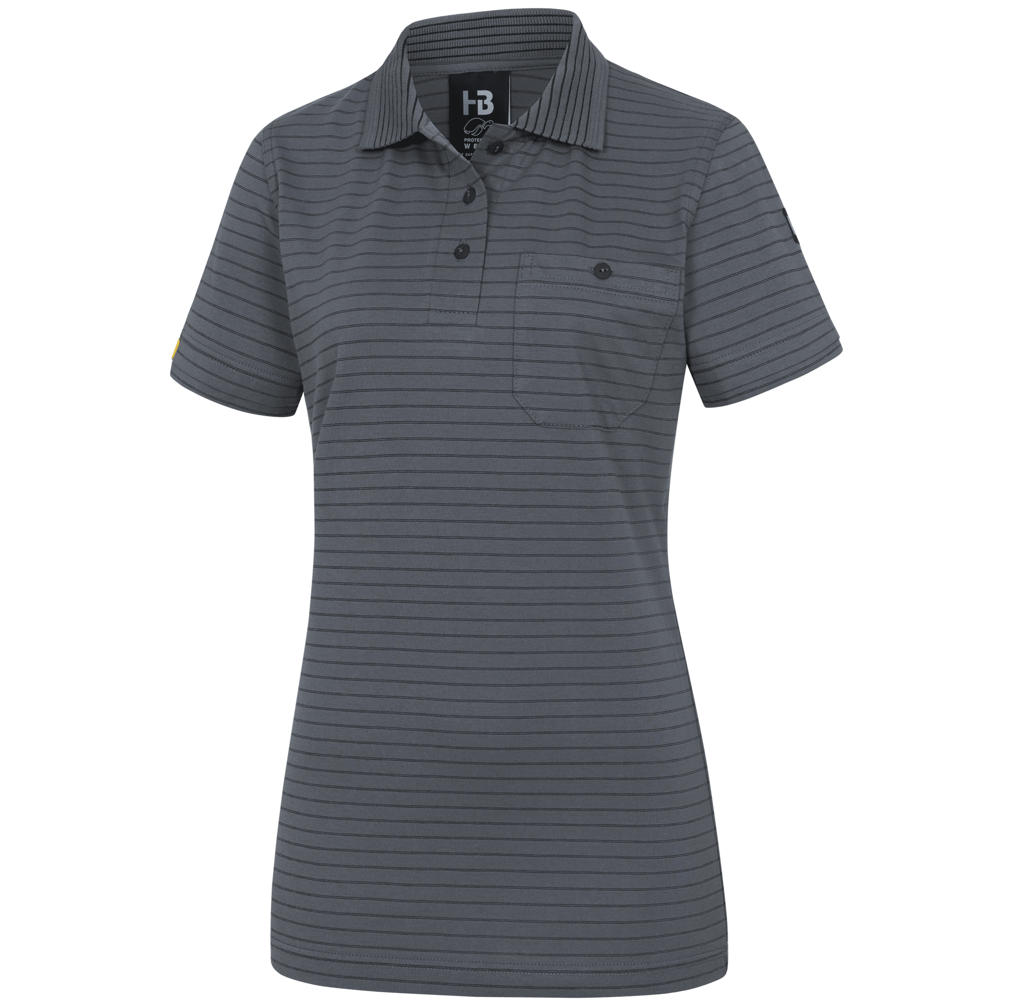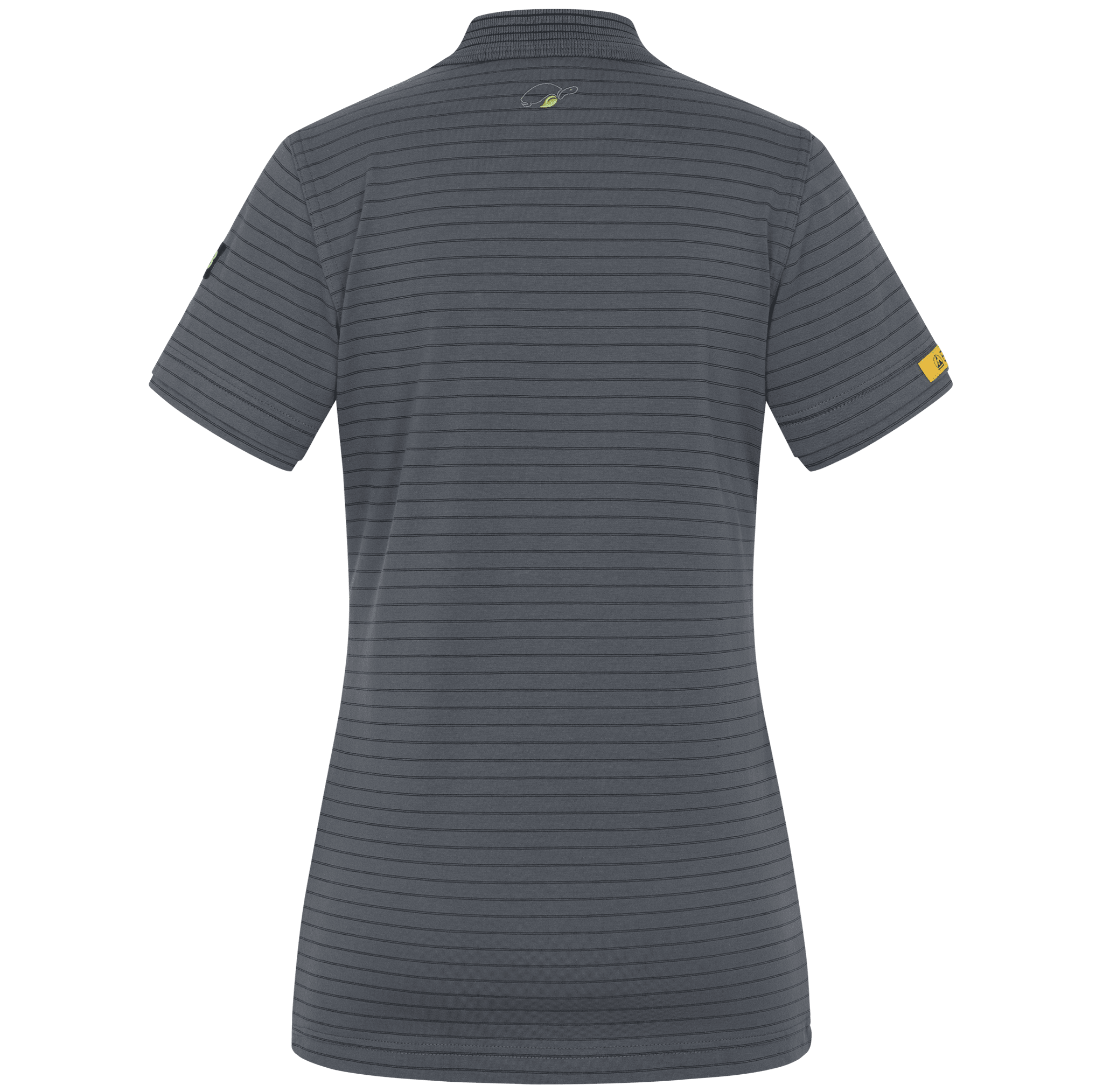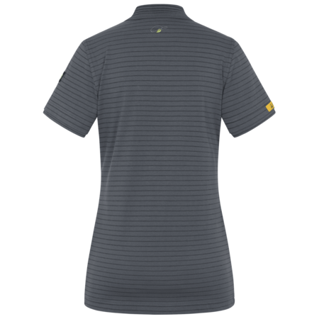 Single- or two-coloured • female cut • conductive polo collar • polo placket with buttoning • front pocket on the left with button • double-stitched sleeve opening • stylish shirt length, suitable for wearing on top • embroidered EPA logo on left upper arm.Fields of application