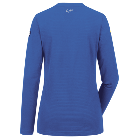 Single- coloured • female cut • crew-neck •stylish shirt length, suitable for wearing on top • embroidered ESD logo on right upper arm.Fields of application