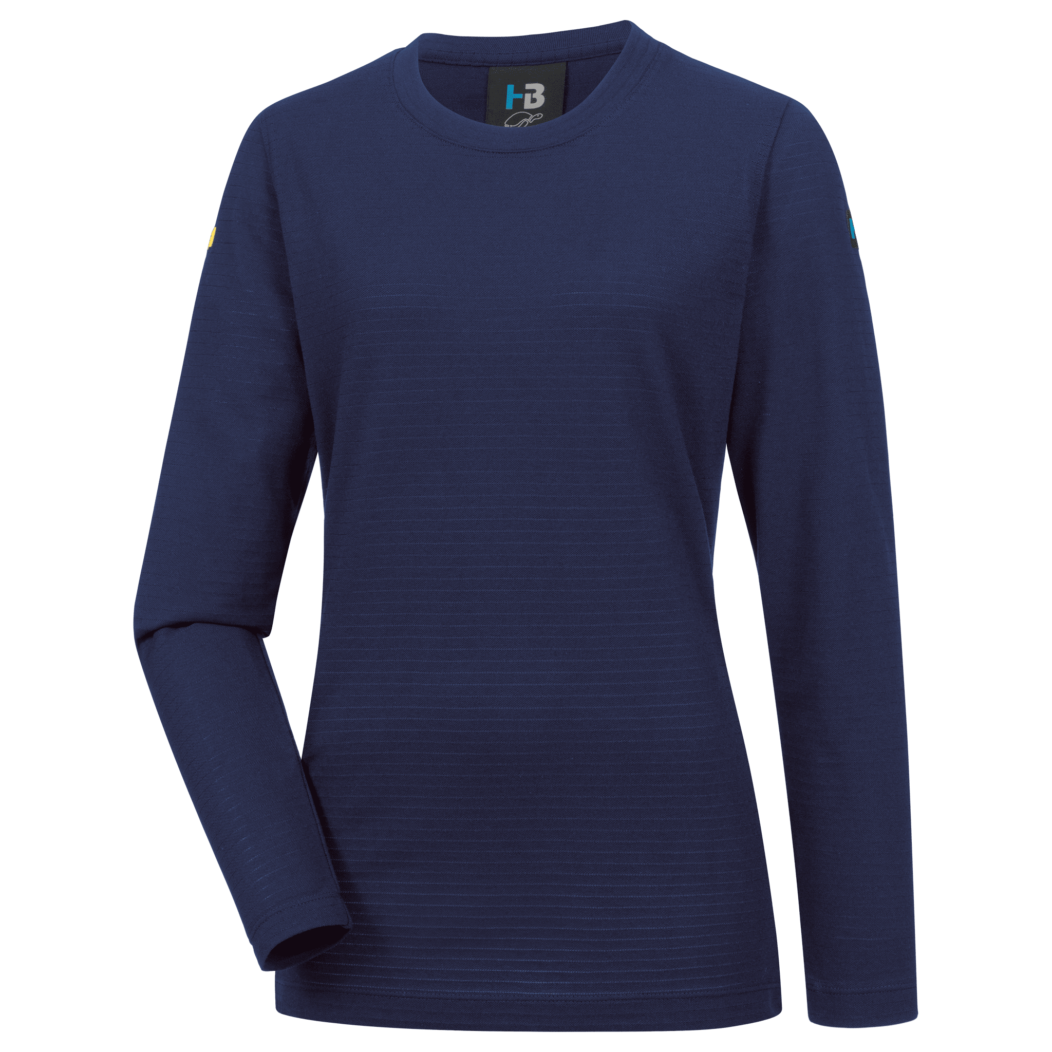 Single- coloured • female cut • crew-neck •stylish shirt length, suitable for wearing on top • embroidered ESD logo on right upper arm.Fields of application