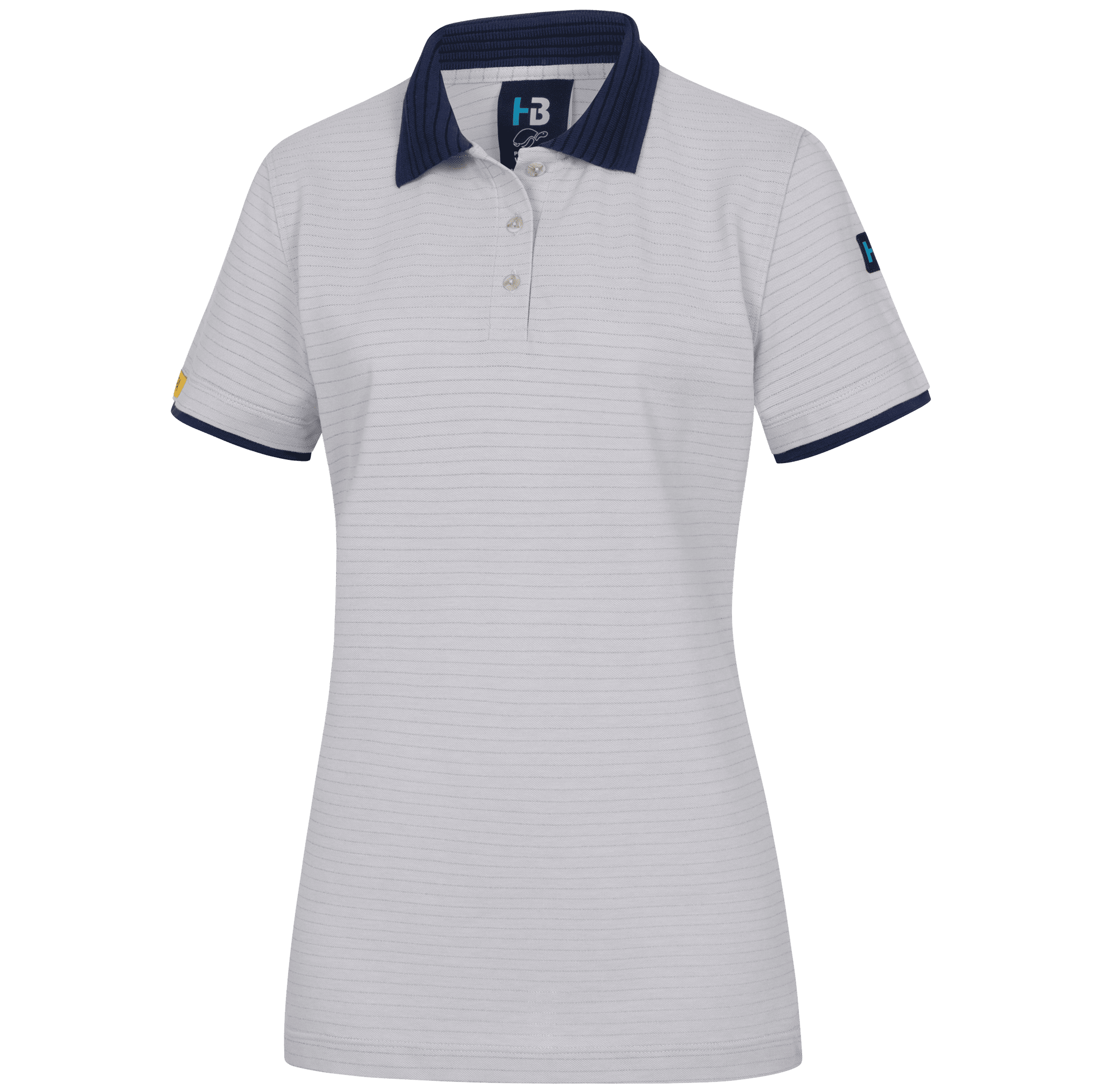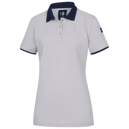 two-coloured • female cut • conductive polo collar • polo placket with buttoning • double-stitched sleeve opening • stylish shirt length, suitable for wearing on top • EPA logo on right upper arm.Fields of application