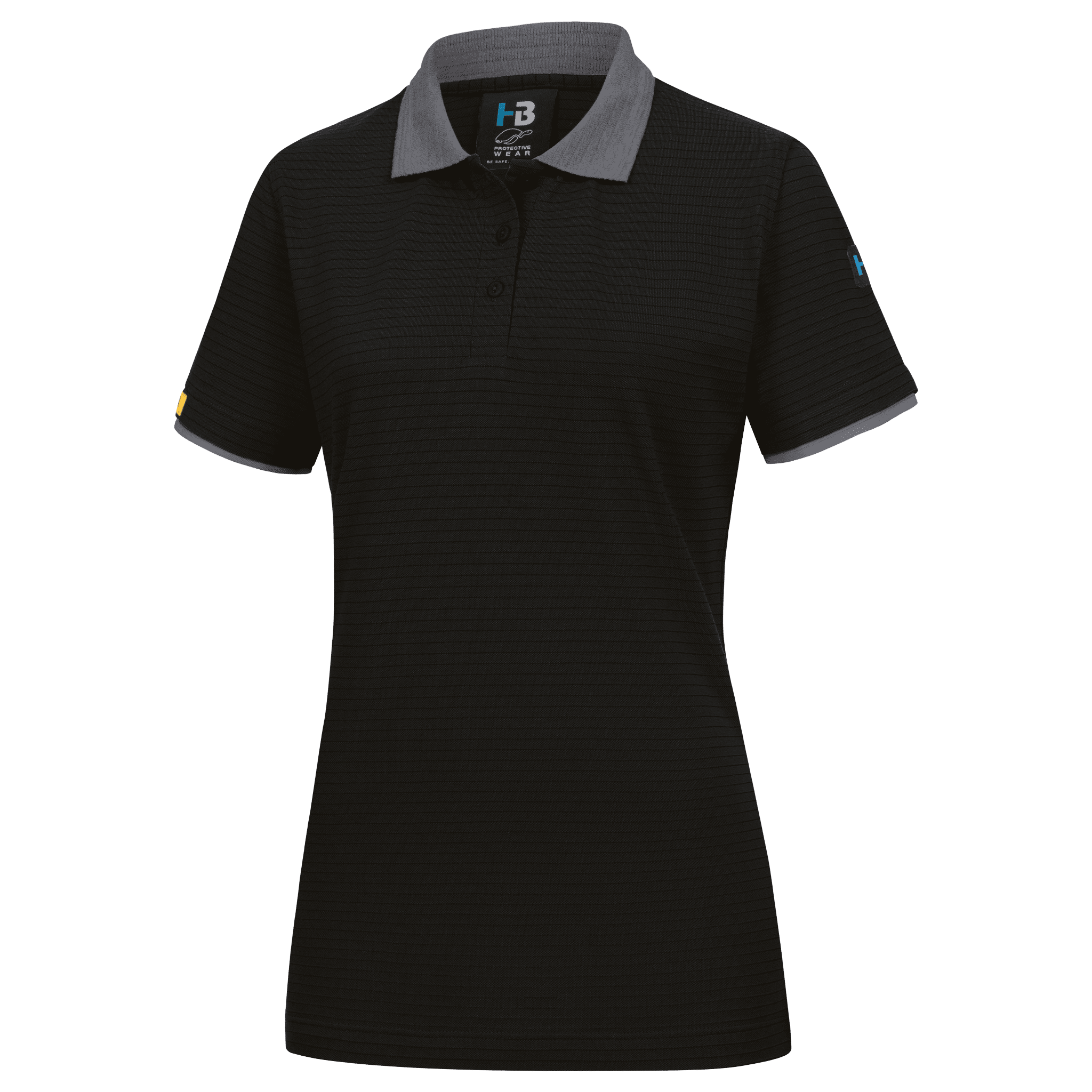 two-coloured • female cut • conductive polo collar • polo placket with buttoning • double-stitched sleeve opening • stylish shirt length, suitable for wearing on top • EPA logo on right upper arm.Fields of application