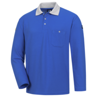 Single-coloured • conductive polo collar • polo placket with buttoning • front pocket on the left with buttoning • stylish shirt length, suitable for wearing on top • EPA logo on right upper arm.Fields of application