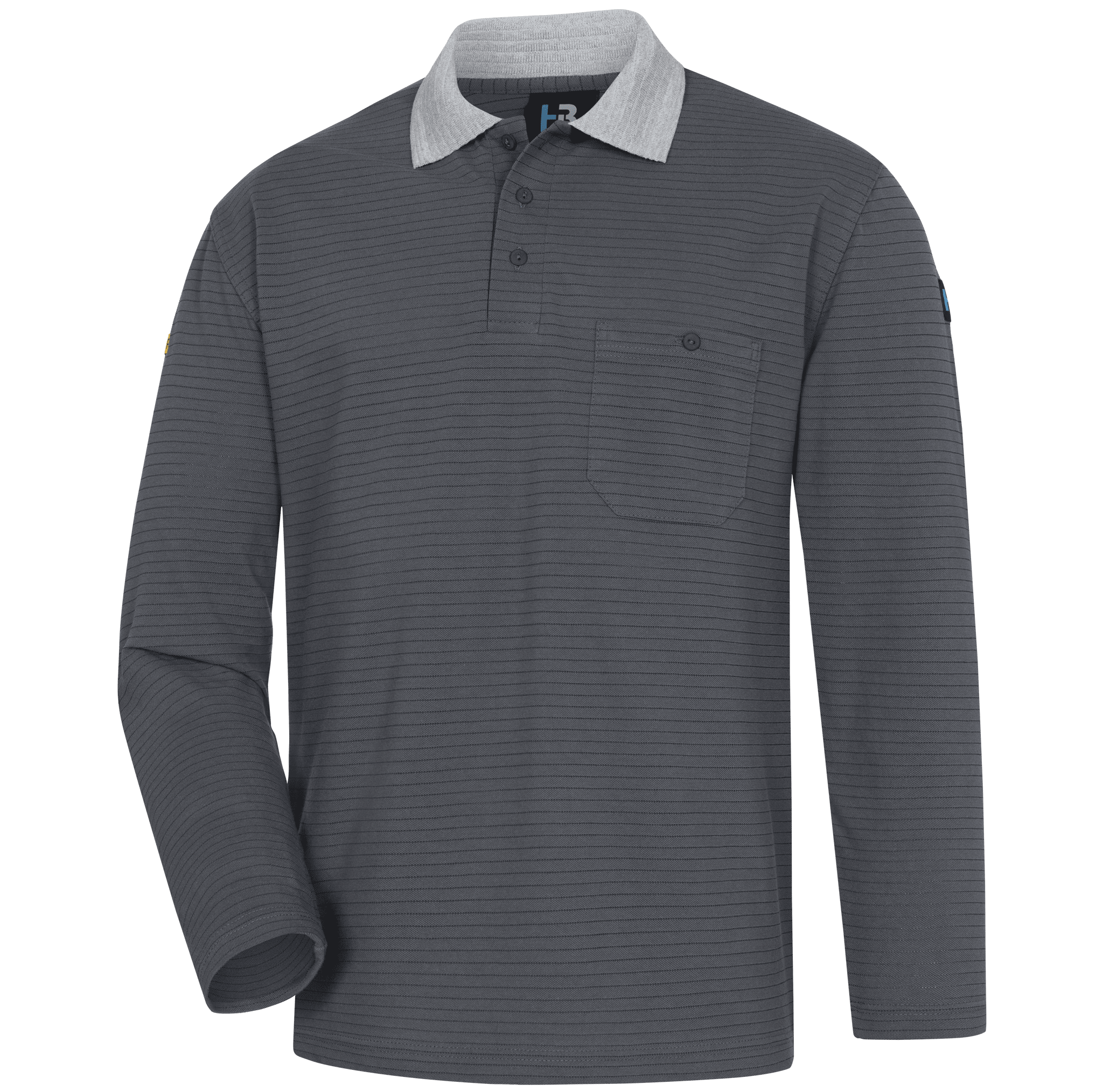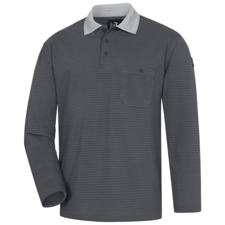 Two-coloured • conductive polo collar in contrast colour • polo placket with buttoning • front pocket on the left with button • stylish shirt length, suitable for wearing on top • EPA logo on right upper arm.Fields of application