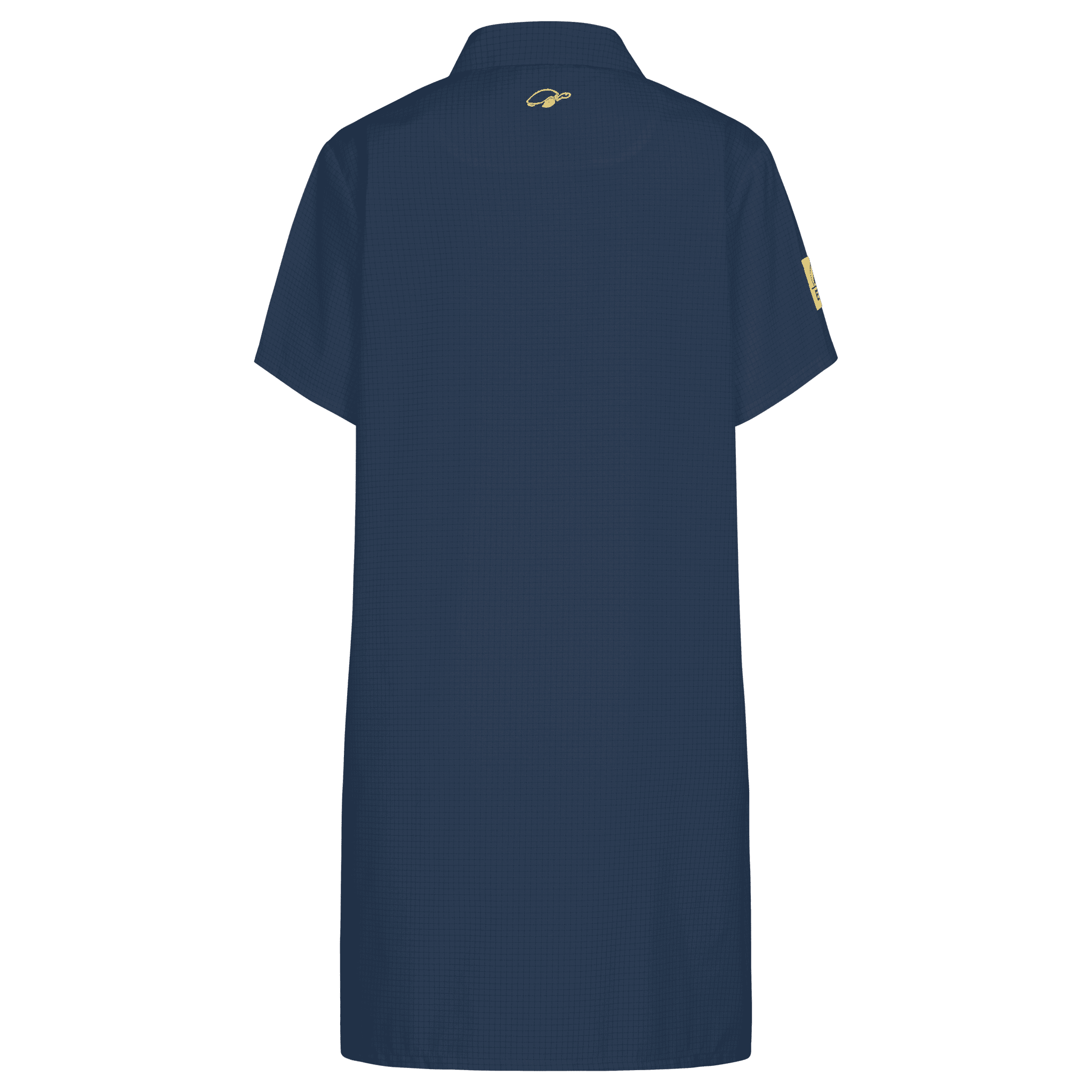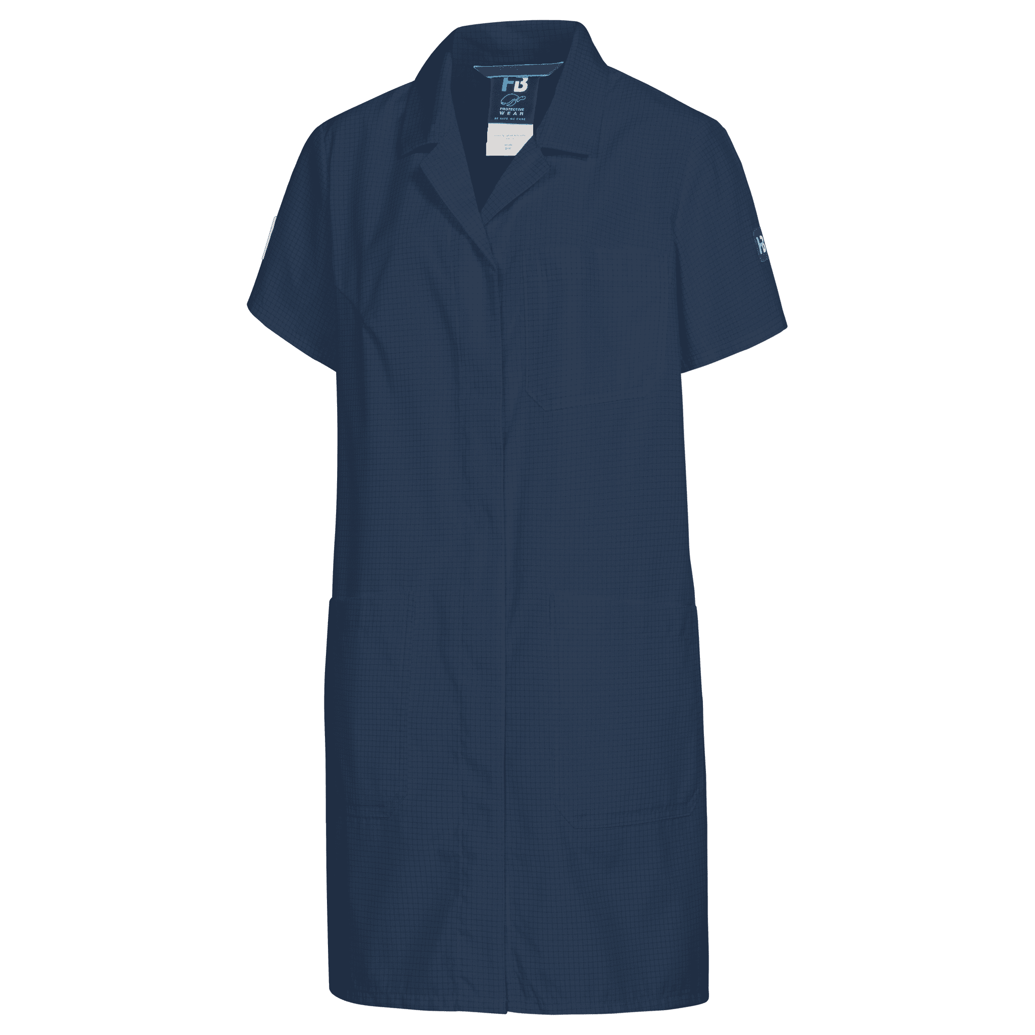 Single-coloured • cut without side seams • lapel collar • front with one-sided covered snap fasteners • 1 attached front pocket on the left • 2 attached side pockets with transverse openings • hemmed short-sleeve • EPA logo on right upper arm.Fields of application