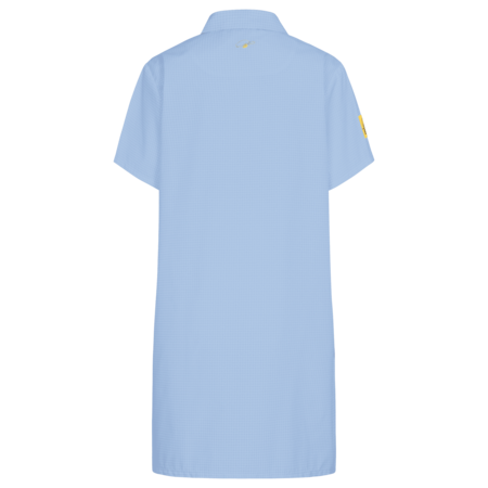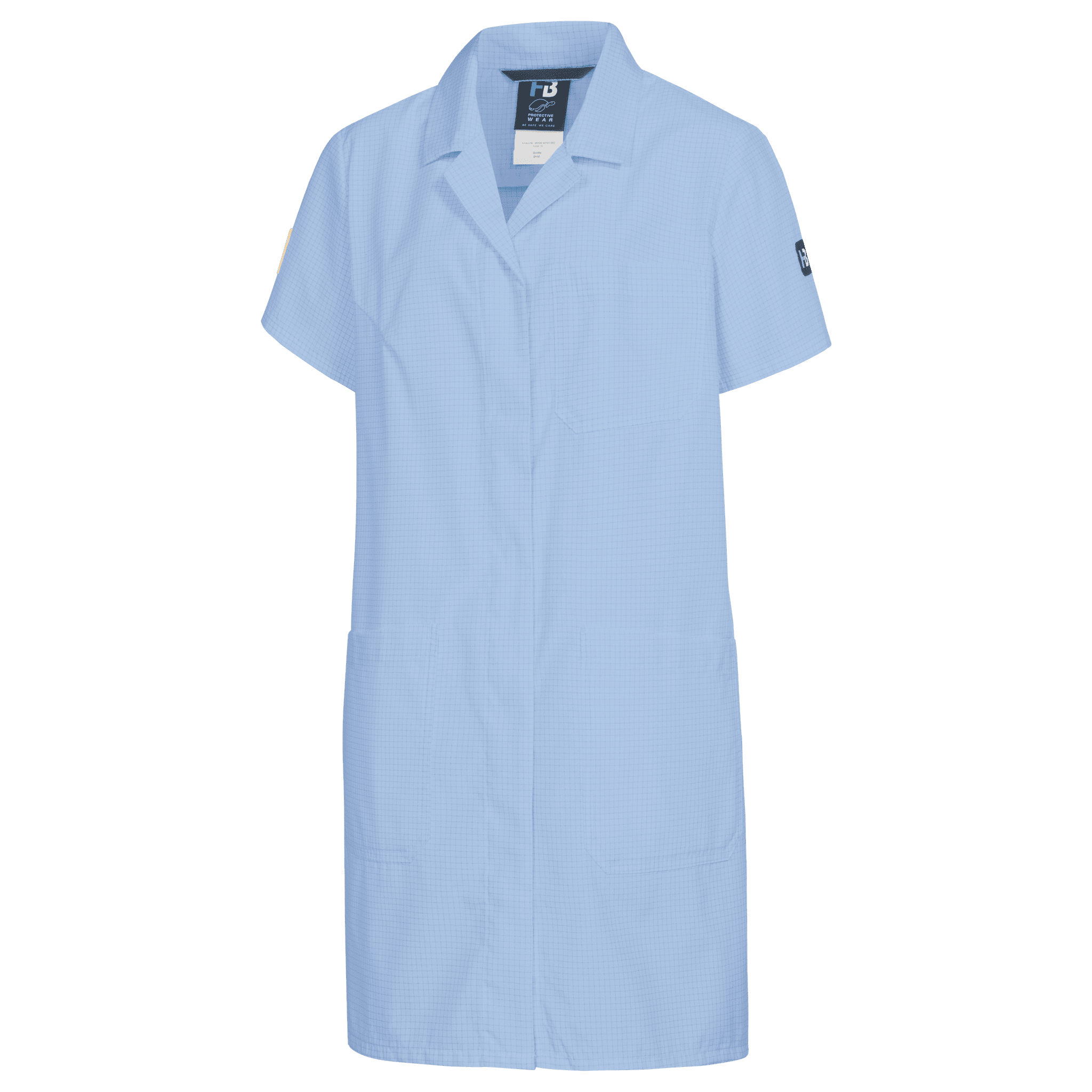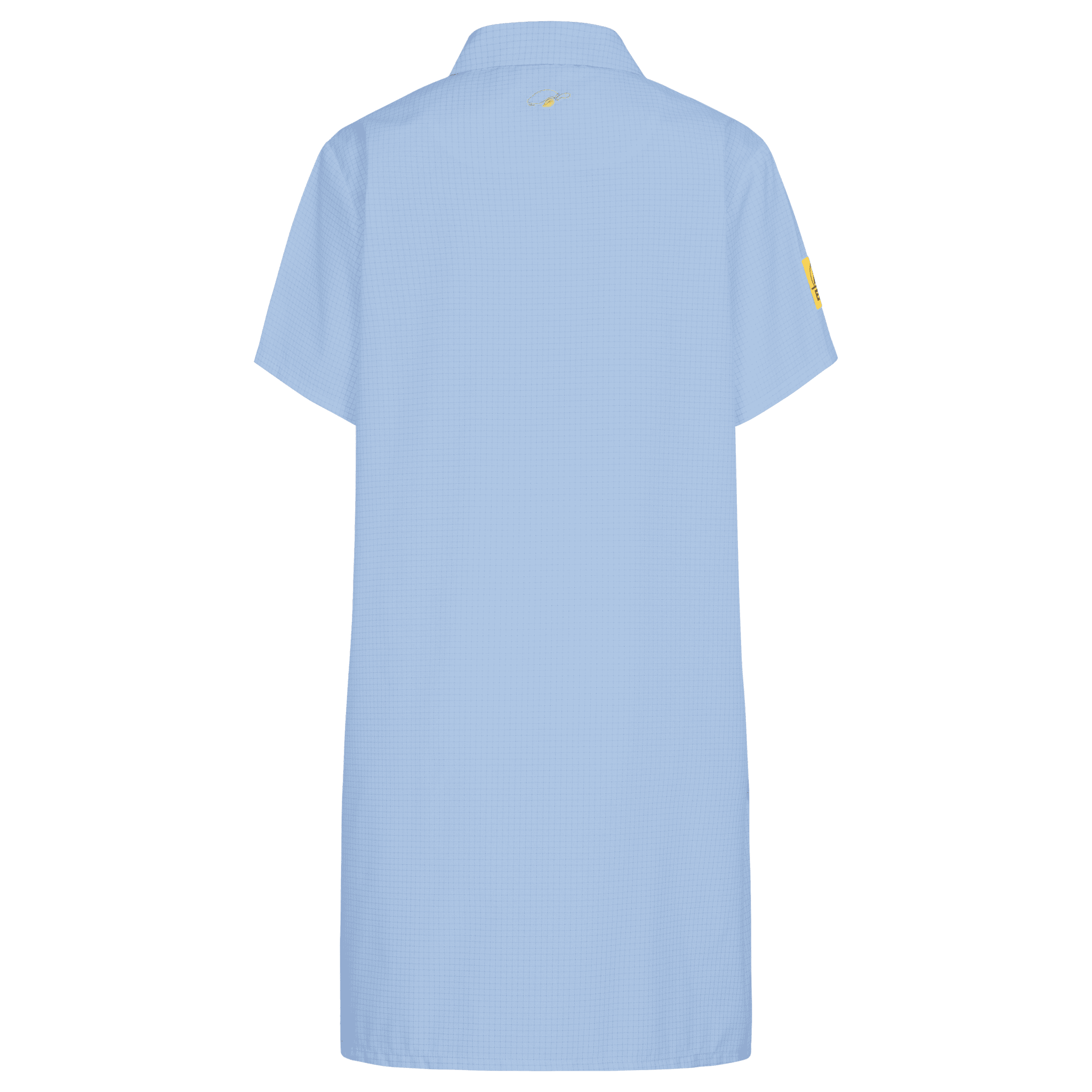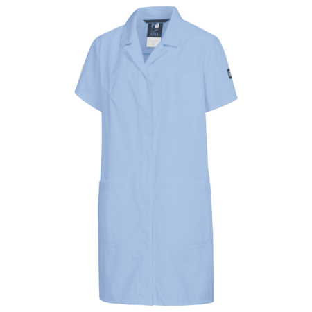Single-coloured • cut without side seams • lapel collar • front with one-sided covered snap fasteners • 1 attached front pocket on the left • 2 attached side pockets with transverse openings • hemmed short-sleeve • EPA logo on right upper arm.Fields of application
