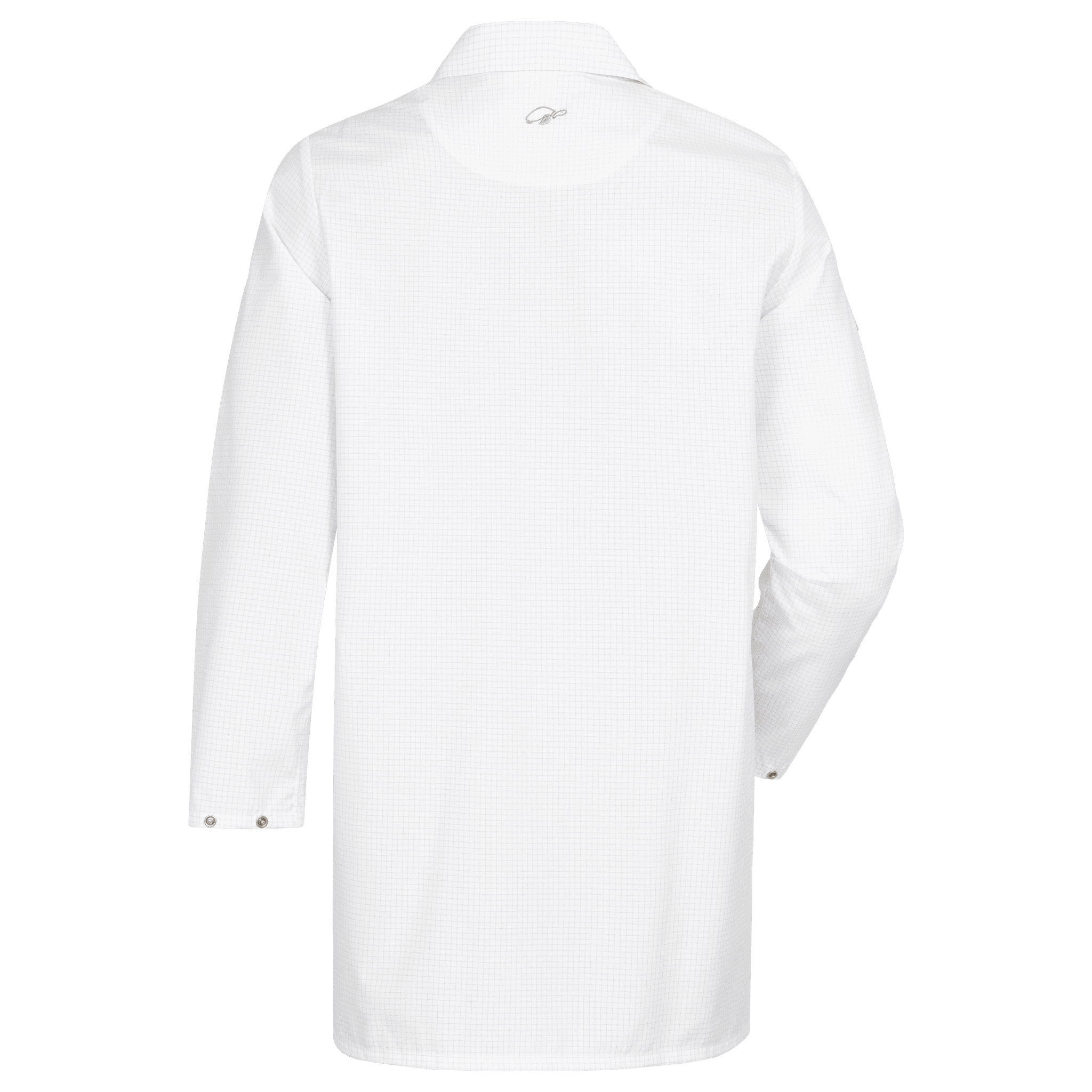 Single-coloured • cut without side seams • lapel collar • front with one-sided covered snap fasteners • 1 attached front pocket on the left • 2 attached side pockets with transverse openings • sleeve hem adjustable via snap fasteners • EPA logo on right upper arm.Fields of application