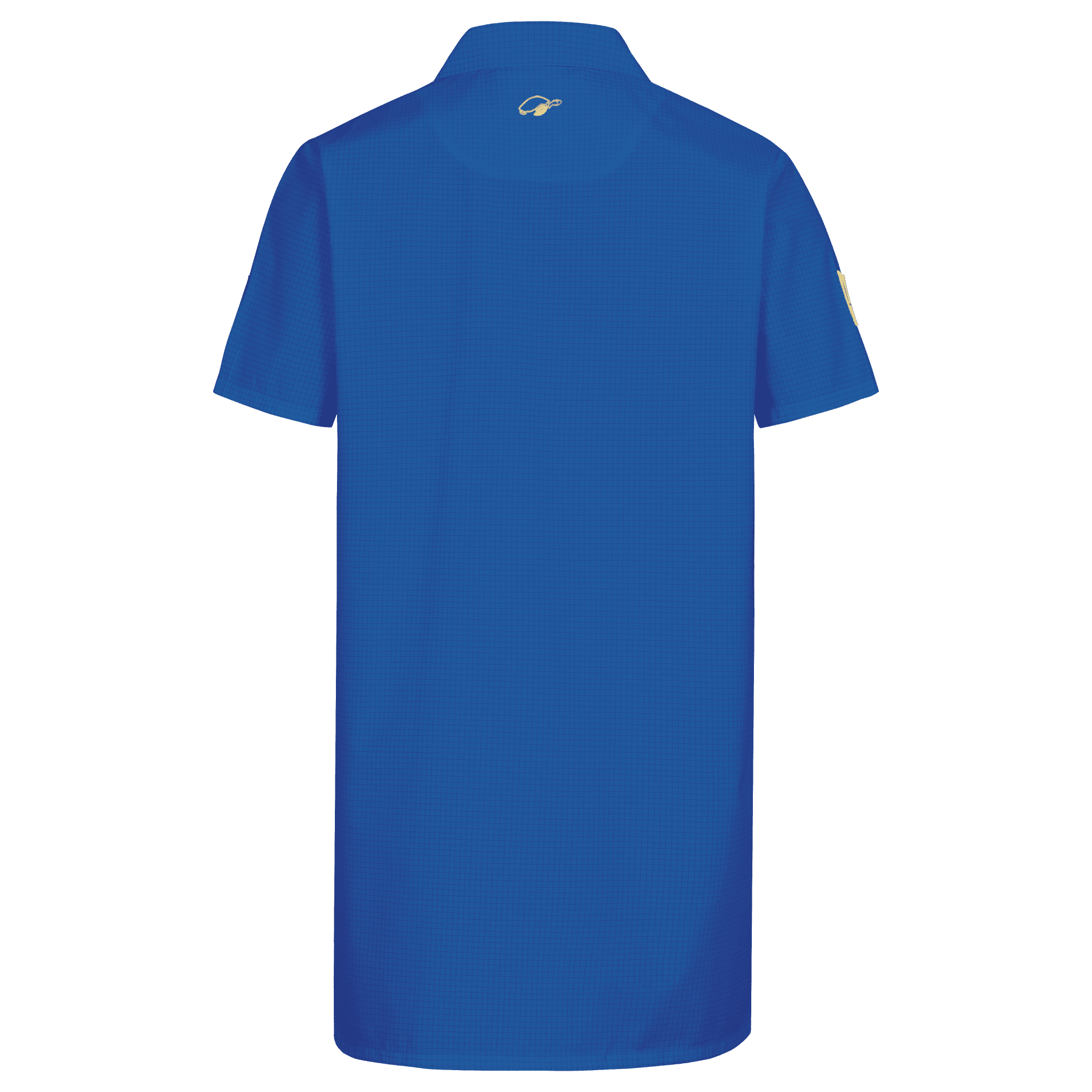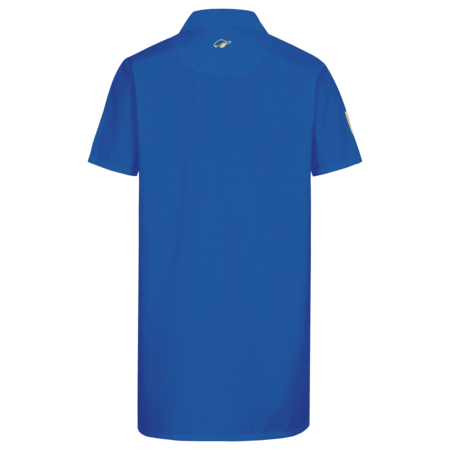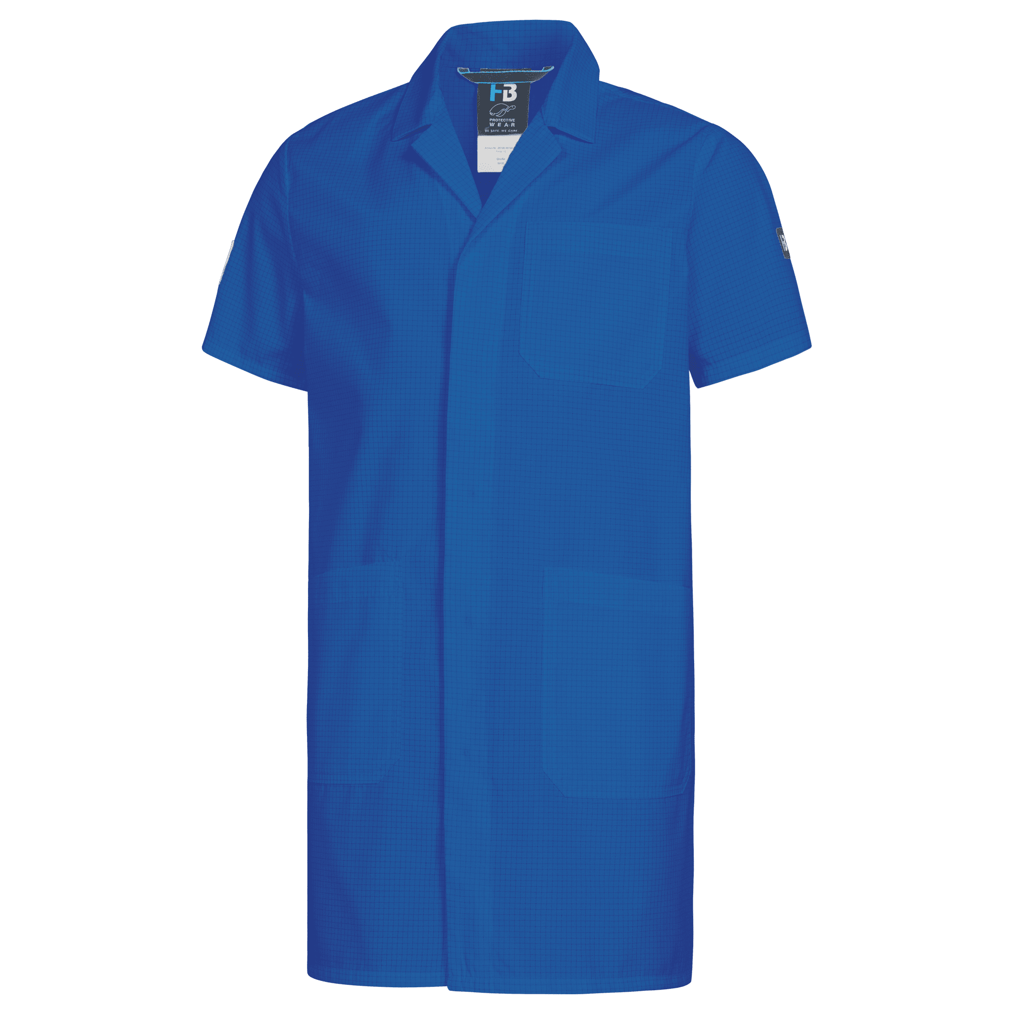 Single-coloured • cut without side seams • lapel collar • front with one-sided covered snap fasteners • 1 attached front pocket on the left • 2 attached side pockets with transverse openings • hemmed short-sleeve • EPA logo on right upper arm.Fields of application