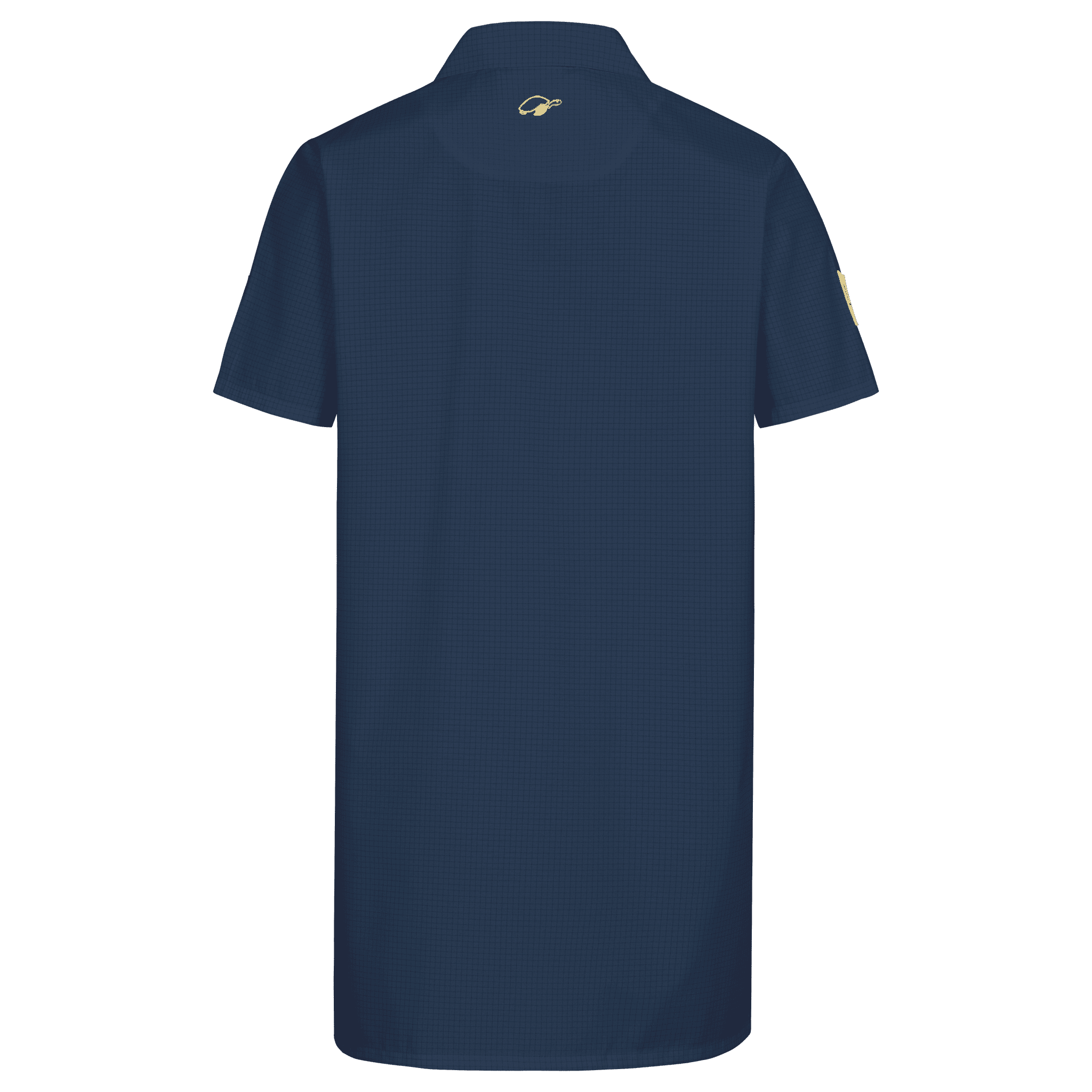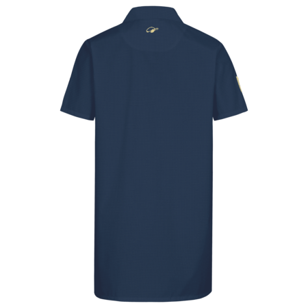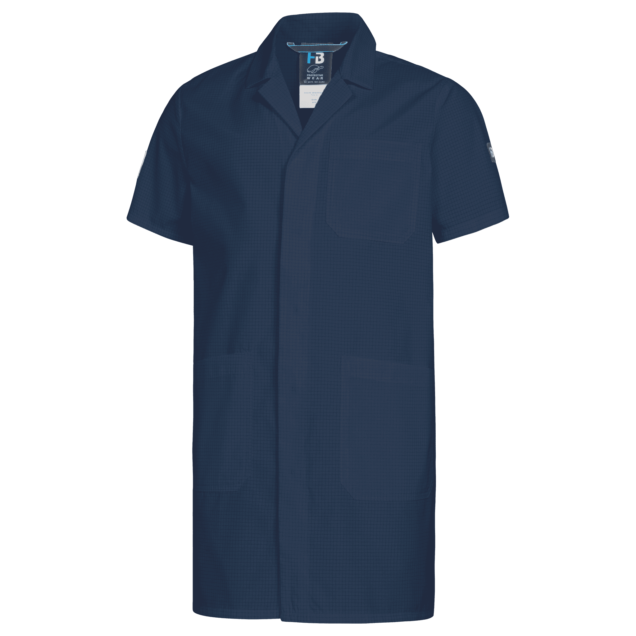 Single-coloured • cut without side seams • lapel collar • front with one-sided covered snap fasteners • 1 attached front pocket on the left • 2 attached side pockets with transverse openings • hemmed short-sleeve • EPA logo on right upper arm.Fields of application