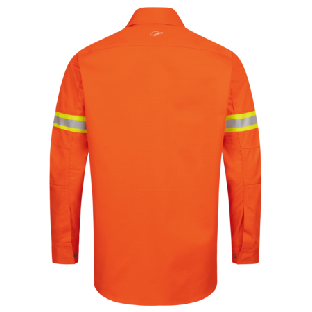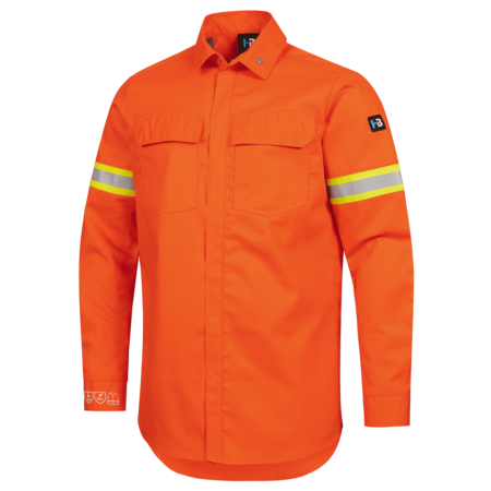 single-coloured • Comfort Fit • turn-down collar with snap fastener • collar additionally with a plastic push button to close when the collar is turned up • front zipper with covered snap fastener on both sides • preformed sleeves • chest pocket with flap and sleeve cuff with gusset - each with covered snap fastener • flame-retardant reflective stripes on the arms, suitable for industrial laundry and with yellow background • FR Leasing label • standard pictograms as FR embroidery an right sleeve cuff • manufactured with roof tile design.Availability