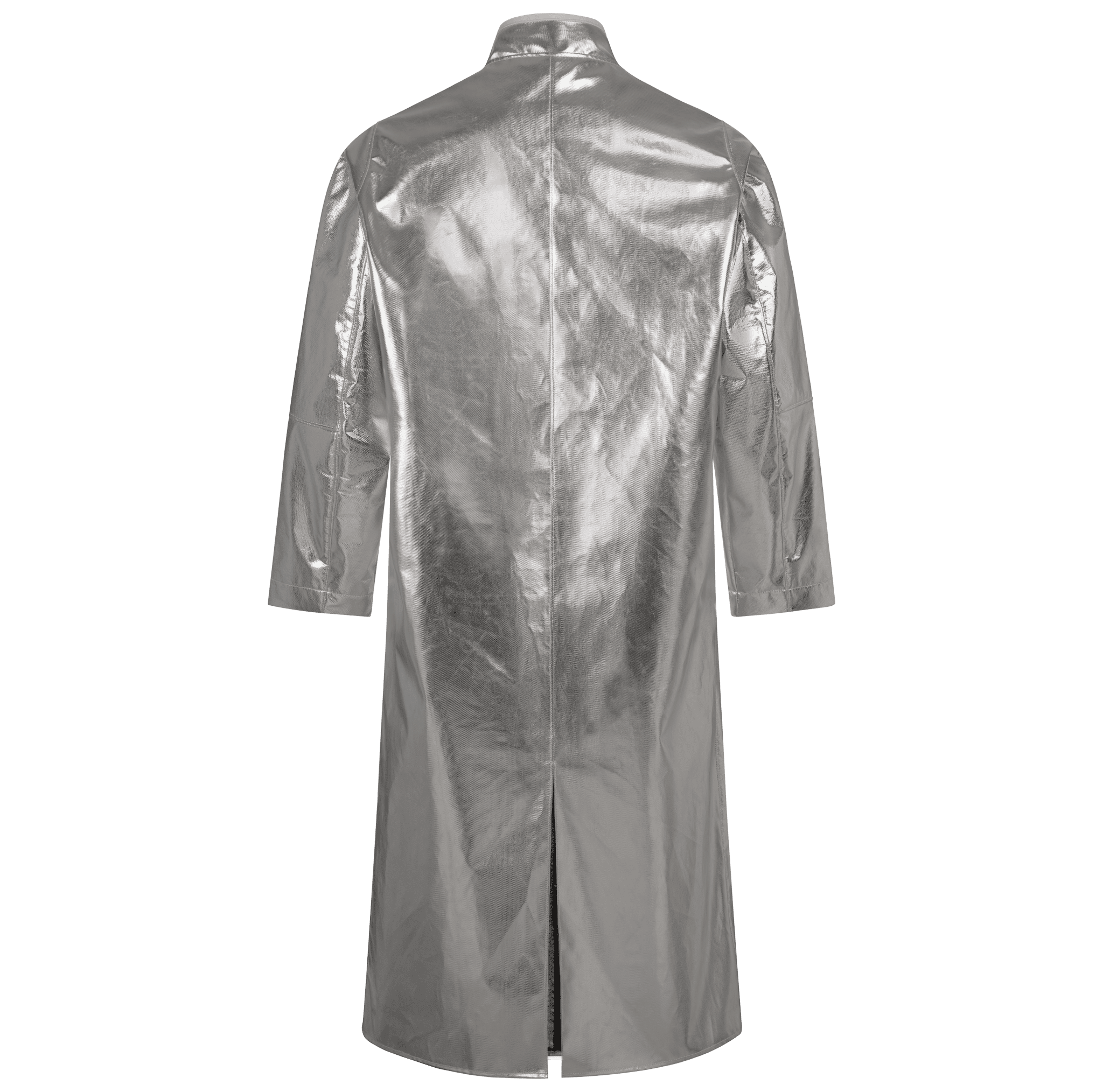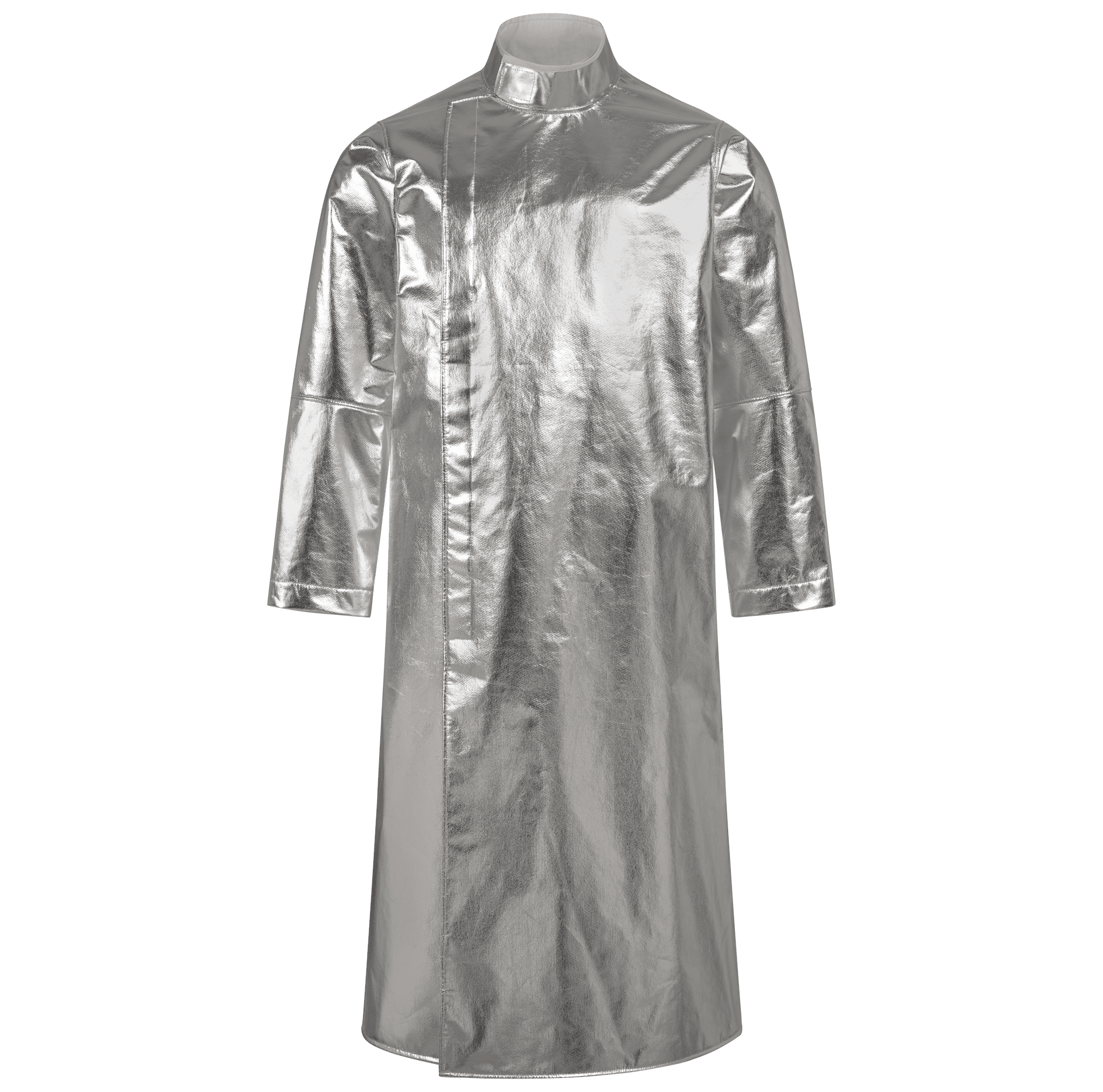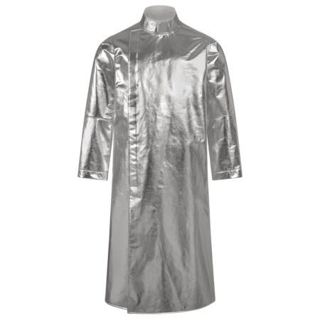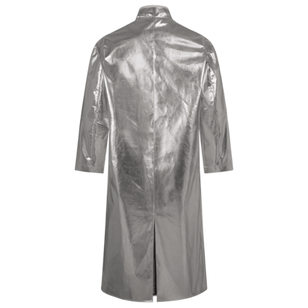 Front and sleeves made of AW-1/Y • Back and collar made of CK-12/Z • Inner collar with flame-retardant cotton lining • front with covered hook&loop fastener FR • Ergonomically shaped sleeves • Sleeve width adjustable with snap fasteners • with underarm ventilation • with walking slit • FR seams • length: approx. 130 cm long.