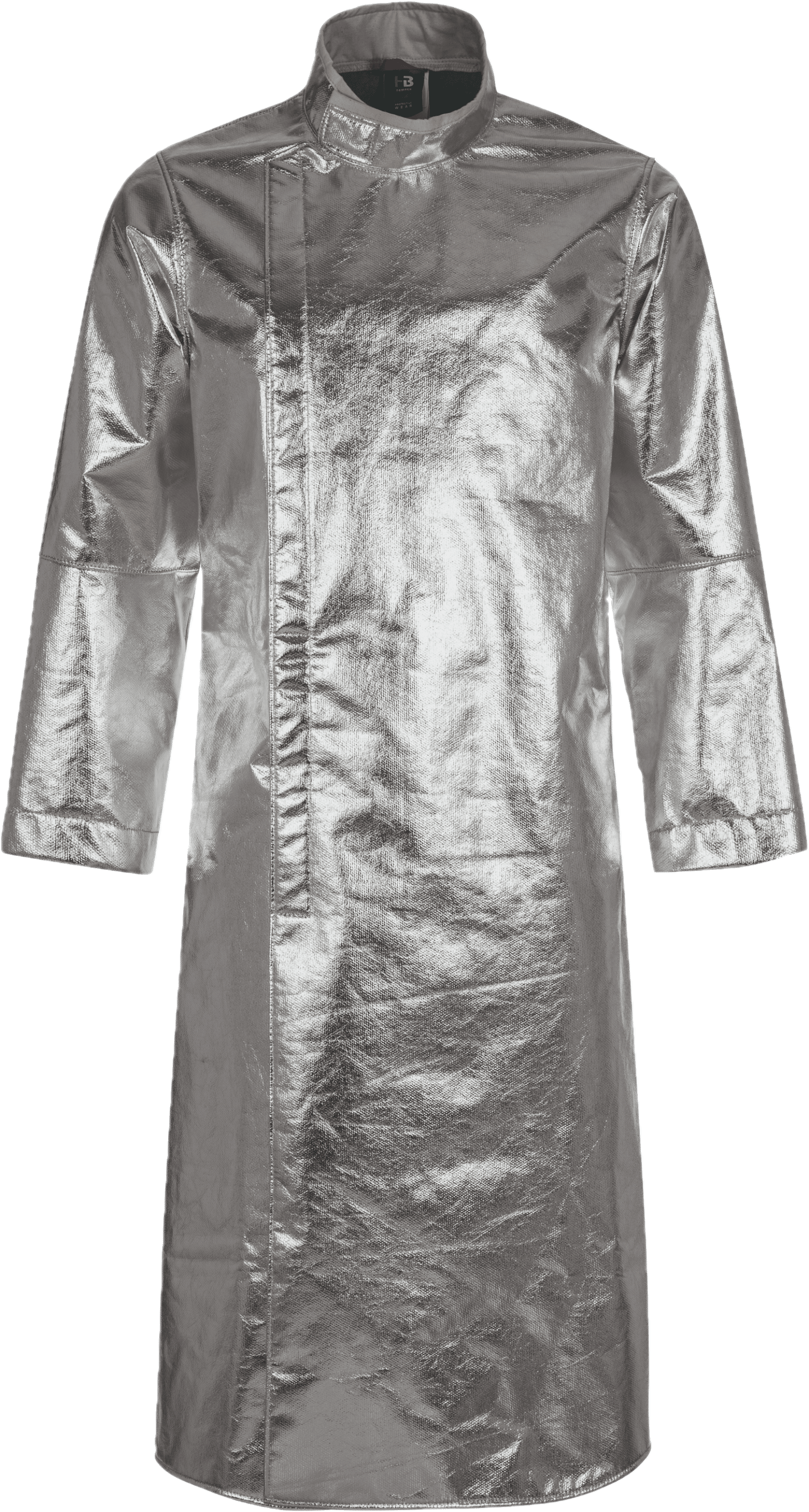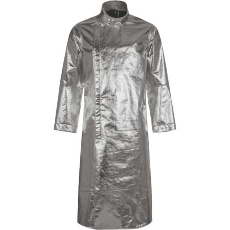 Inner collar with flame-retardant cotton lining • front with covered hook&loop fastener FR • Ergonomically shaped sleeves • Sleeve width adjustable with snap fasteners • with walking slit • FR seams • length: approx. 130 cm long.Fields of application
